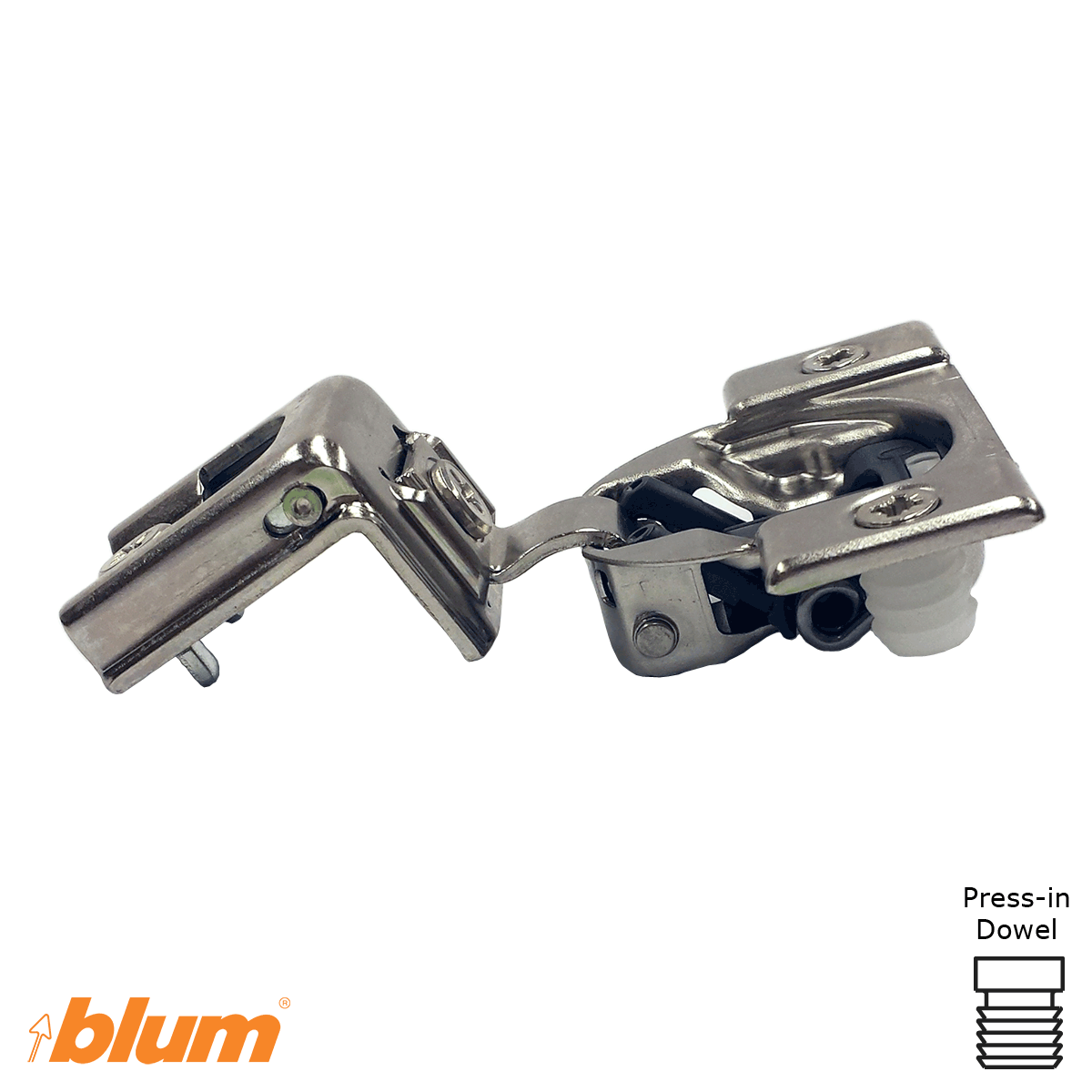 Press-In Dowel Hinges include the needed screws and must be inserted with a knock-in tool or Compact insertion ram. Attach each Hinge to a Face Frame using one #8 X 3/4″ type17 Truss head screw. (Screws are sold separately).